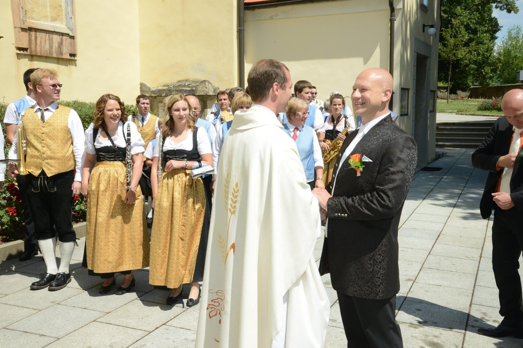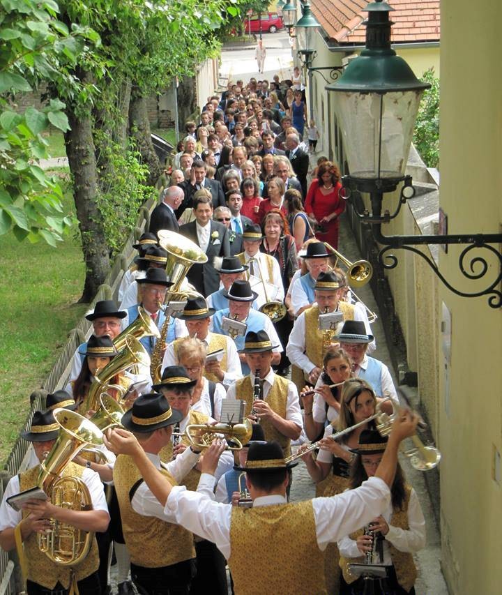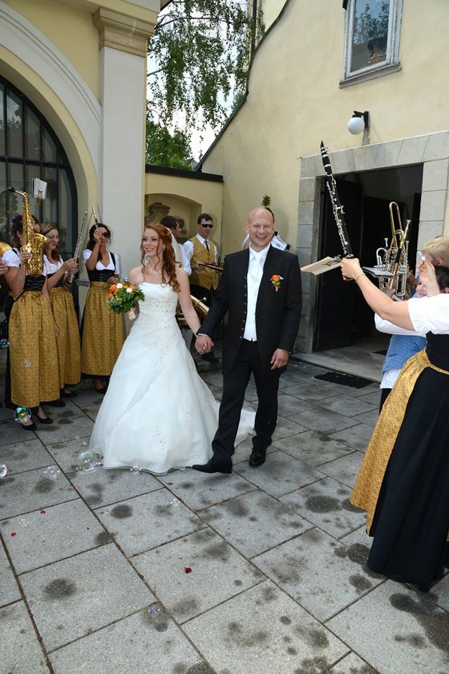 Musikvereine sind gar kein schlechtes Pflaster, um einander näher zu kommen. Das beweisen unsere zahlreichen MusikerInnen Hochzeiten in den letzten Jahren. Am 12. Juli 2014 war es bei Sonja und Harry so weit. Bei Sommer-Wetter gaben sie sich in der Pfarre Stammersdorf das Ja-Wort - dabei nicht fehlen durften wir KollegInnen vom Musikverein Stammersdorf - musikalisch und auch sonst :-)